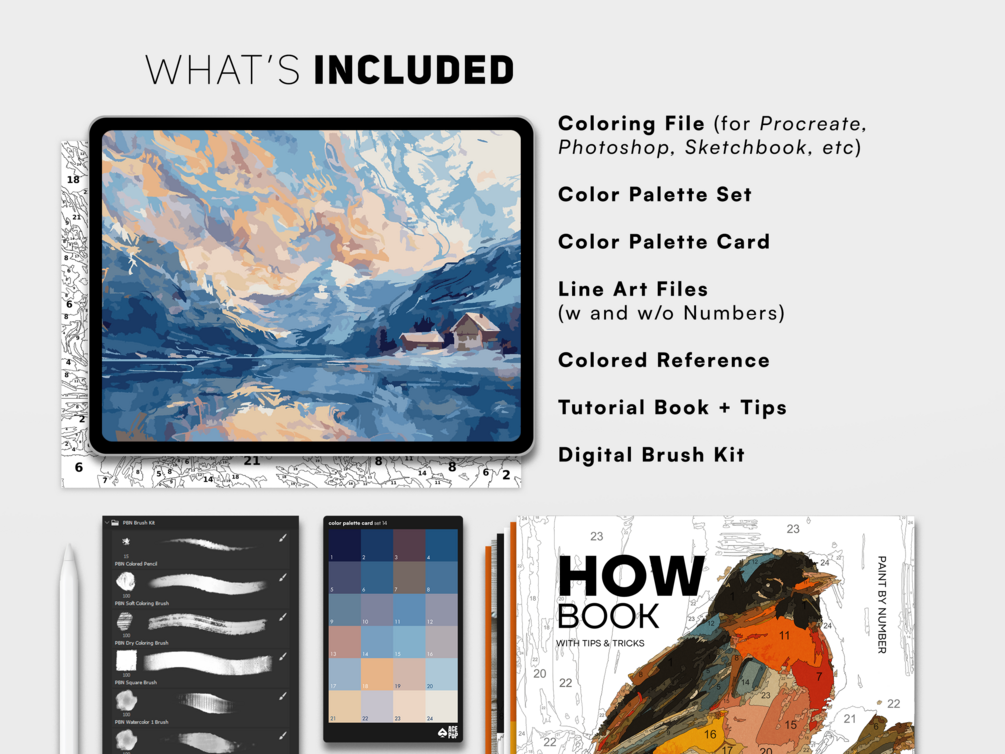 Explore the joy of digital paint by number with this Snowy Lake Scene Painting Kit. Paint on Procreate, Fresco, Photoshop, etc OR print the files and paint by hand. Use your creation as a printable art, decorative display, or wallpaper. Instantly access the files and unleash the artist inside you!