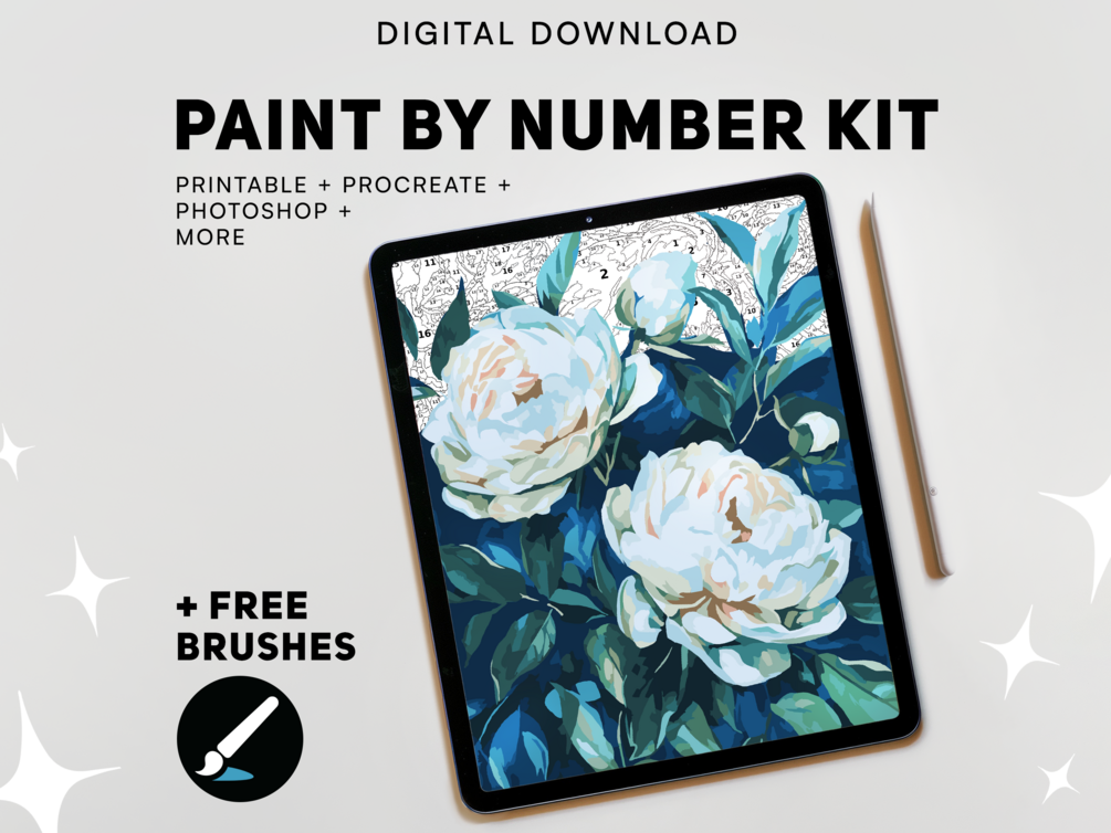 Explore the joy of digital paint by number with this Simple Flower Painting Kit. Paint on Procreate, Fresco, Photoshop, etc OR print the files and paint by hand. Use your creation as a printable art, decorative display, or wallpaper. Instantly access the files and unleash the artist inside you!