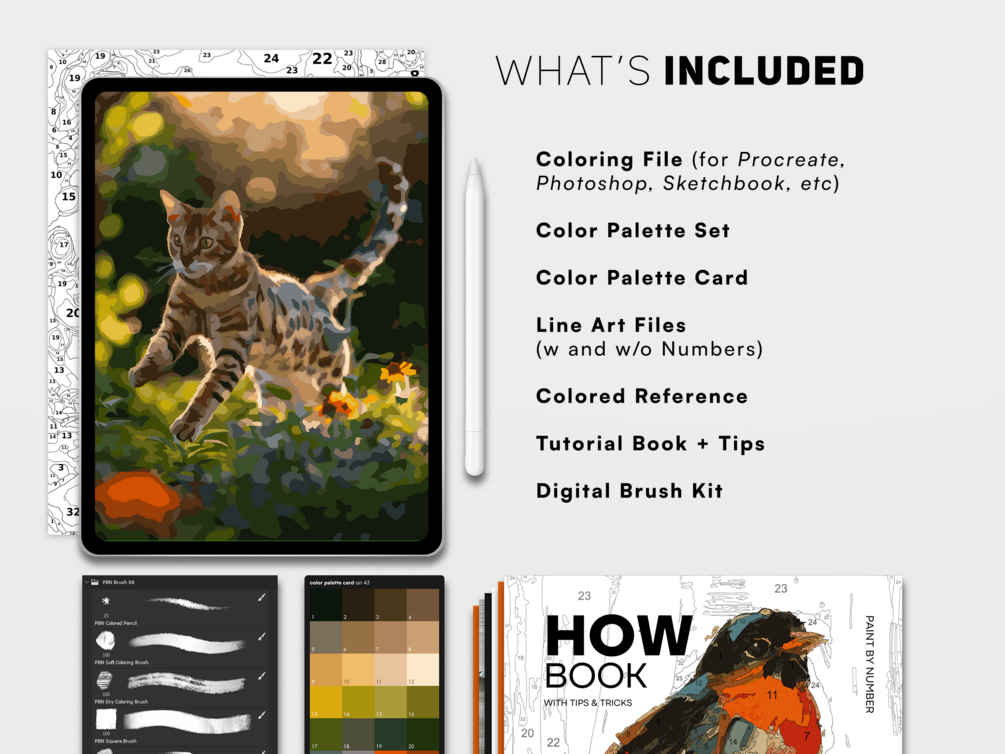 Explore the joy of digital paint by number with this Bengal Cat Painting Kit. Paint on Procreate, Fresco, Photoshop, etc OR print the files and paint by hand. Use your creation as a printable art, decorative display, or wallpaper. Instantly access the files and unleash the artist inside you!