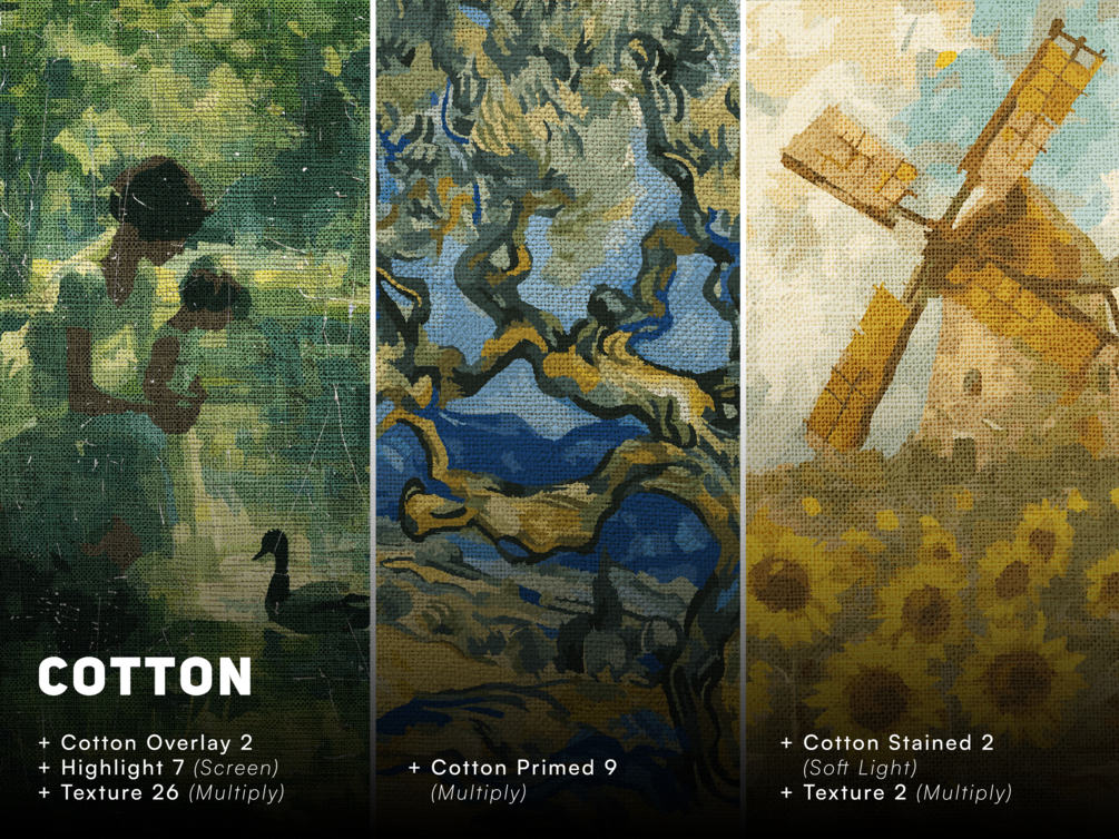Give your artworks a realistic feel with this 220+ canvas texture Set Bundle for Artists!. You can use these high-resolution files instantly in Procreate, Photoshop, and more by simply importing them into your painting and changing their blend modes. This set includes a variety of fine-tuned cotton & linen fabric and paper textures that are ideally designed to seamlessly be used for adding and creating overlays, backgrounds, digital papers, journals, patterns, and more. It is a great tool for artists looking to elevate their art!
